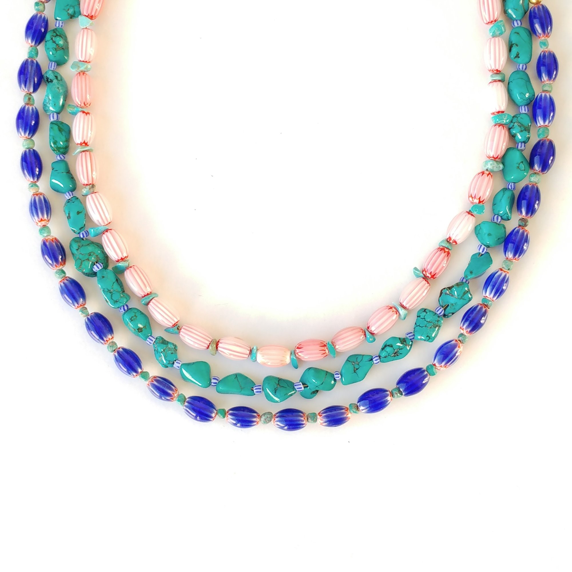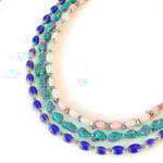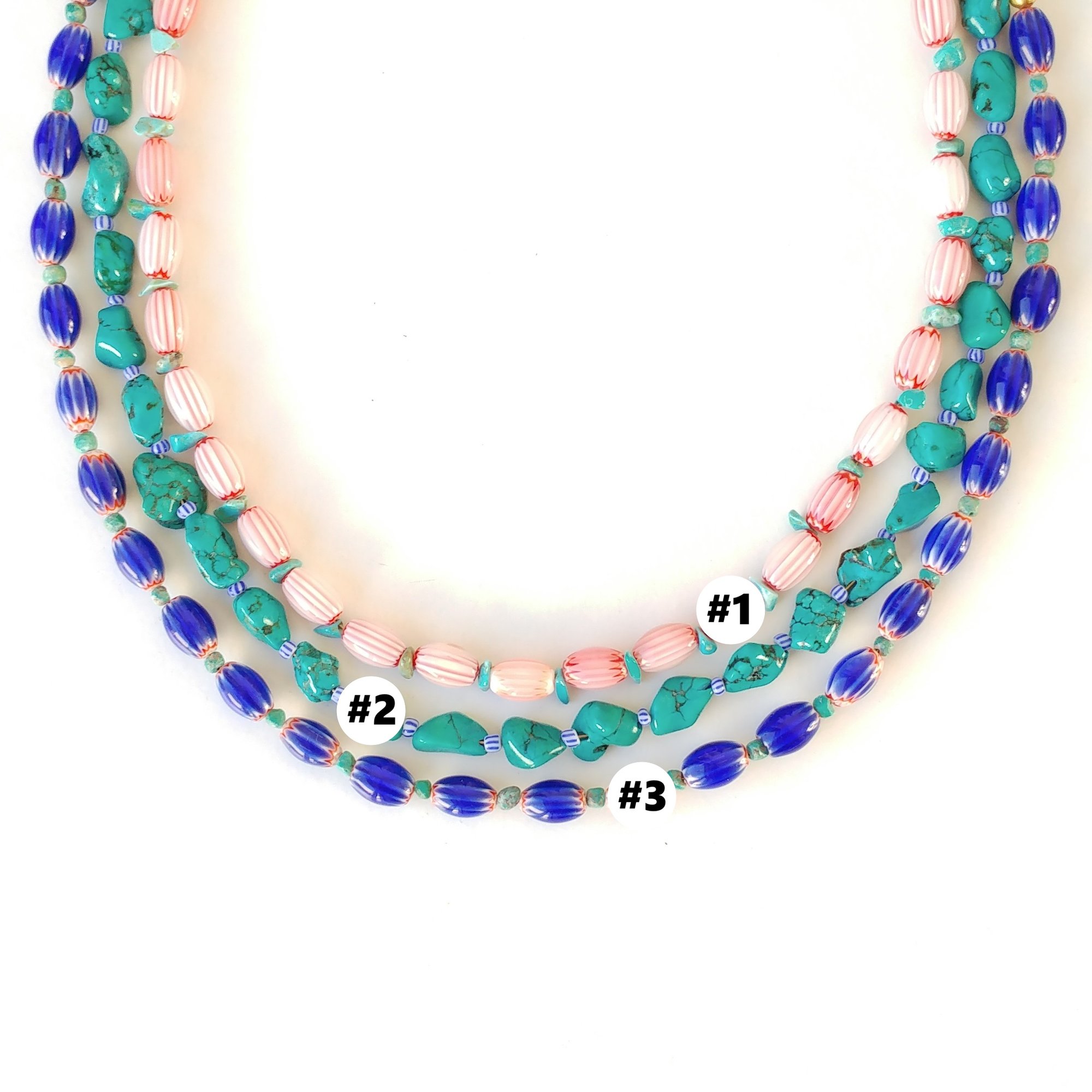 TAILLE FIXE env. 42/43cm, Perles en pierre en verre millefiori ou magnésite et verre, apprêts en acier