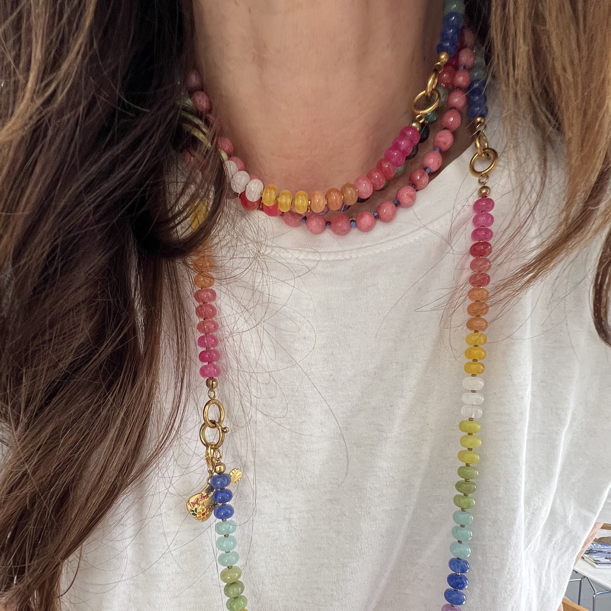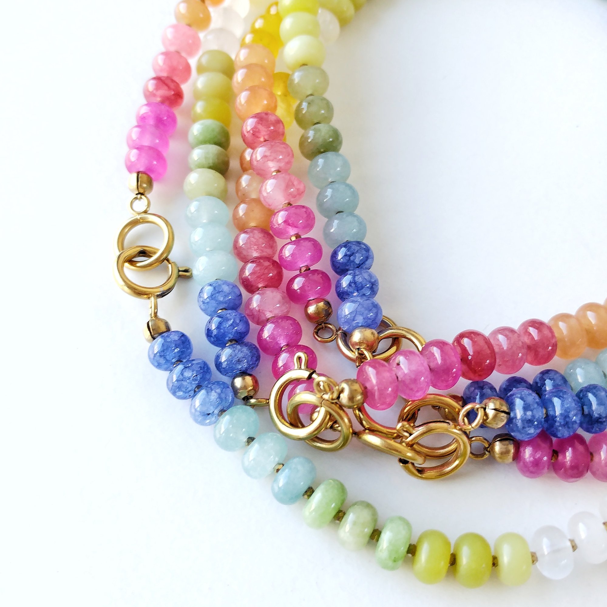 TAILLE FIXE env. 41cm, Perles en pierre en jade et verre, apprêts en acier