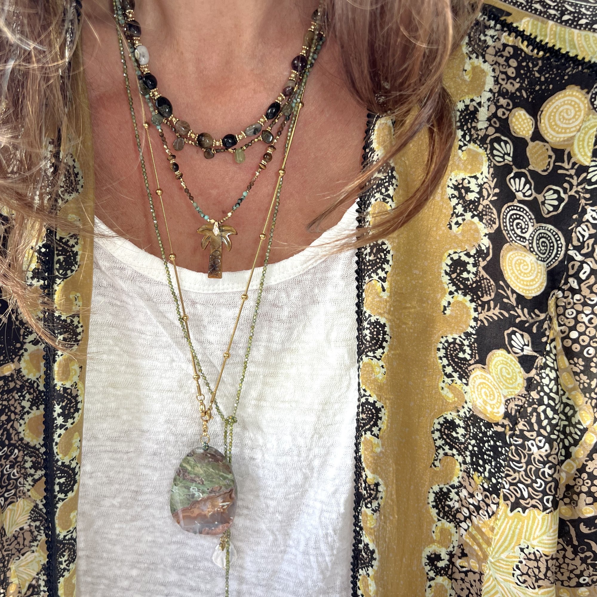 - # 4 : 46 à 51 cm, pendentif en amazonite, perles en plaqué or 3 Microns, turquoise africaine, aventurine, chrysocolle, verre et hématite, apprêts en acier