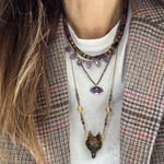 - # 4 : 42 à 48 cm, pendentif en améthyste et oeil de tigre, perle en pyrite, apprêts en acier - les Trouvailles de Gazoline !