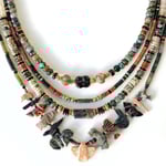- # 1 : 39 à 45 cm cm, perles en agate indienne, verre, coquillage et bois et hématite, perles et apprêts en acier